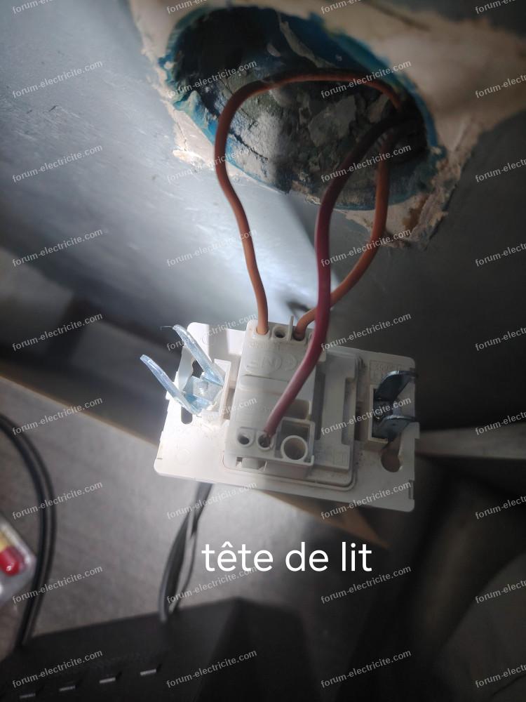 Dans la gaine à l'entrée de la chambre, j'ai deux fils oranges et un marron. Dans celle à la tête de lit, j'ai deux fils oranges et un rouge.