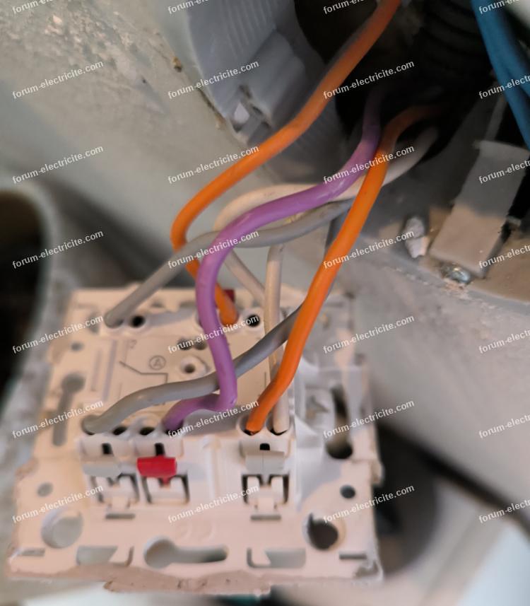 Le violet est une phase coupée connectée à un luminaire si l'on examine la photo initiale.