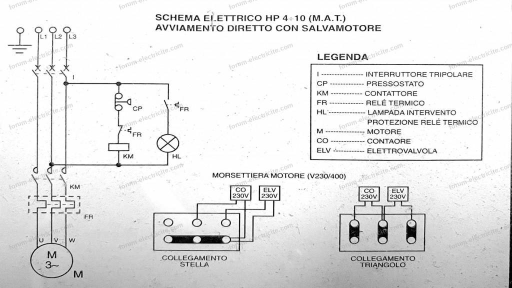 Citation :Erreur, le moteur est un asynchrone triphasé 230 V / 400 V couplé en étoile (collegamento stella).