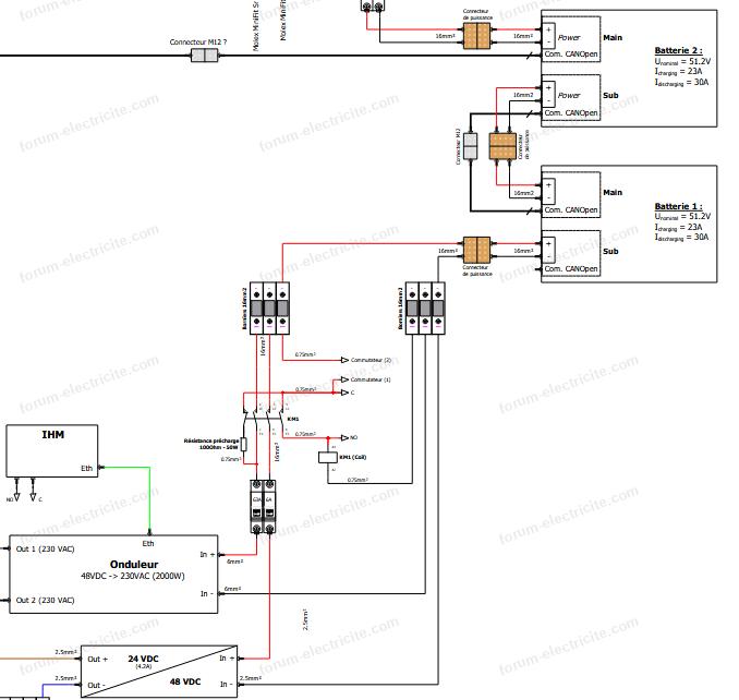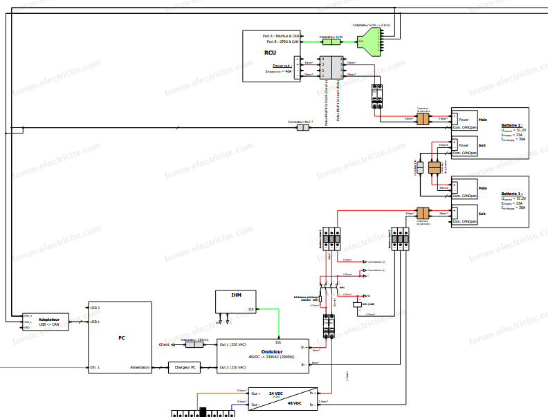 - N°25742 : Bonjour. Je souhaite utiliser un convertisseur Victron Multiplus II 24V pour alimenter mon réseau domestique avec des panneaux solaires. Les batteries prendront le relais en cas de coupure de courant. Voici le schéma de mon...