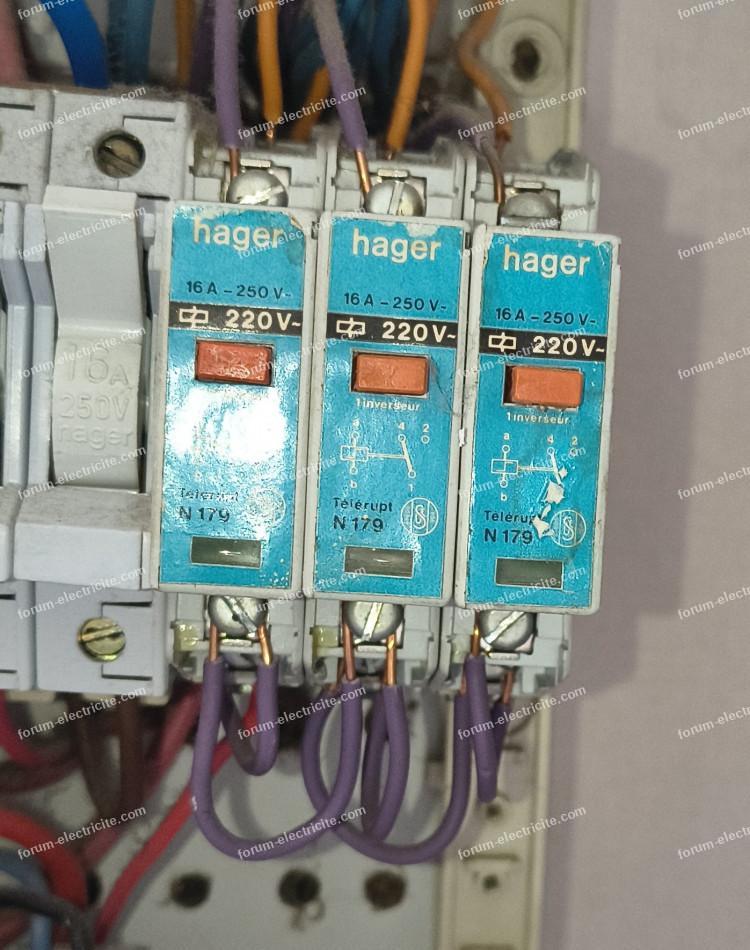 - N°16005 : Bonjour. J'habite un vieille maison dont les télérupteurs sont des Legrand 491-07. Il y en a un qui ne fonctionne plus. Le montage actuel me semble bizarre car le neutre est branché au lieu de la phase. Voir photo...