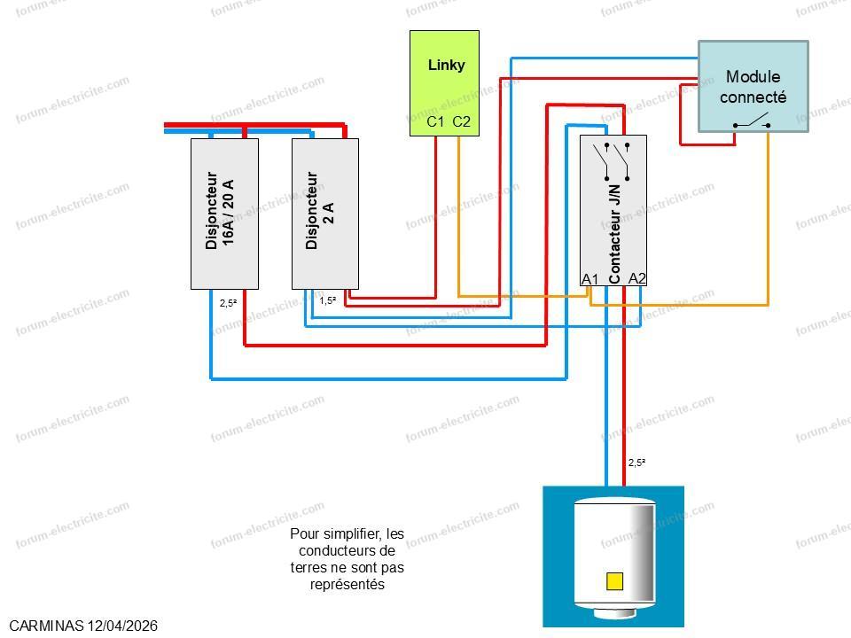 Question Forum Électricité : Recherche schéma chauffe-eau avec contacteur Shelly norme NF C 15-100